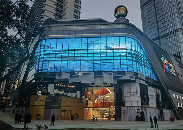 深圳南山科技園,科苑路與科發路交匯處。在這條“硅谷大道”的裙樓之上,新落成了一塊由上海三思承建的606㎡戶外裸眼3D大屏。